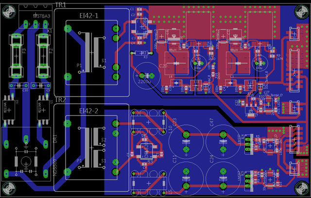 + Layout (Top View) und Schaltplan zur POWER SUPPLY-PLATINE, die gepackten Files findet ihr weiter unten als *.zip.: